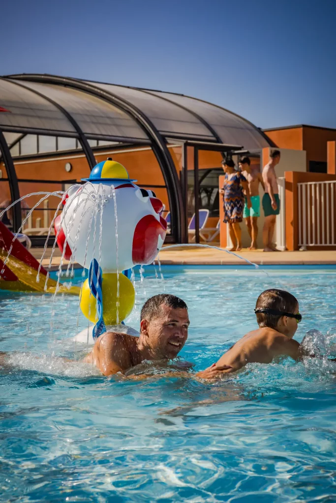 Pour les plus petits, une pataugeoire est à leur disposition avec son clown cracheur d’eau et son toboggan pour garantir des fous rires.