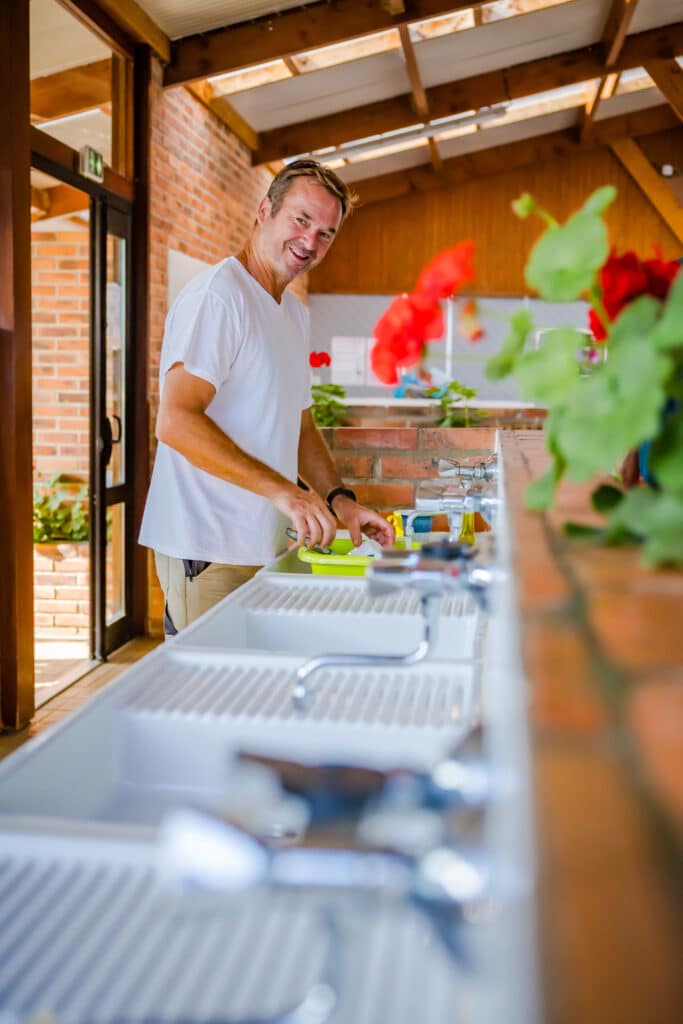 Unsere beheizten Sanitäranlagen sind so konzipiert, dass sie den Bedürfnissen der ganzen Familie gerecht werden, in einer sauberen, modernen und einladenden Umgebung. Sie finden hier auch Babykabinen, um die Pflege der Kleinsten zu erleichtern, eine Kabine für Behinderte, die für einen einfachen und sicheren Zugang eingerichtet wurde, sowie einen Waschraum mit Waschmaschine, Trockner und Bügelbrett.