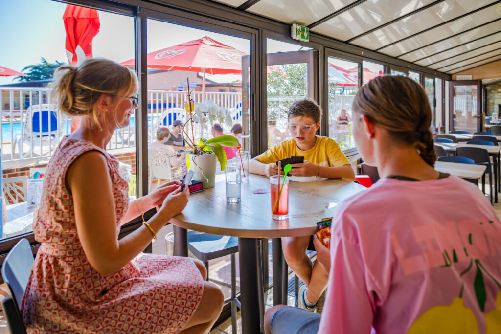 Ontspan onder het genot van een drankje of een ijsje, of het nu je ochtendkoffie is, een verfrissing overdag of een aperitief aan het eind van de dag. Onze bar met zonnig terras is de ideale plek om elkaar te ontmoeten en te lachen.